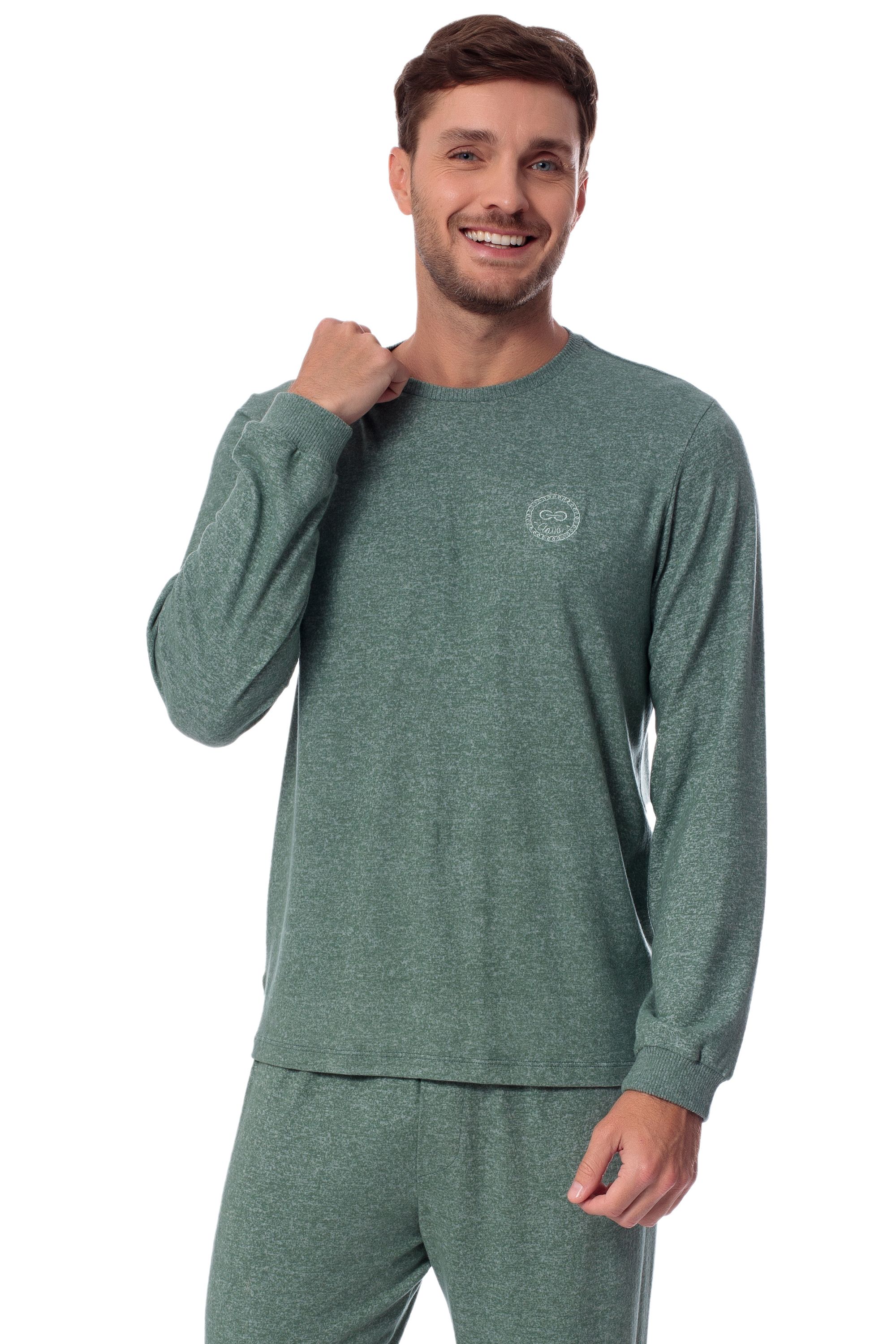 O tricot flanelatto é o grande destaque deste modelo. Este artigo possui em sua composição fios de viscose Strech Premiun, malha feita dentro de uma técnica inovadora de fiação que evita o pilling. A construção desta malha de aspecto lanoso cria uma camada de ar nas fibras do tecido, que atua como um isolamento térmico natural, proporcionando um microclima que mantém o conforto térmico em temperaturas moderadas. O pijama SOFT Masculino possui modelagem tradicional e básica que agrada a diversas idades e estilos. Nesta estação, inovamos com um bordado maior, que destaca o tema da coleção: Entrelaços. Este modelo está disponível também nas versões feminina e infantil unisex, podendo vestir a família inteira com puro aconchego.