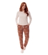 O pijama Patricinha tem toque suave e acabamento refinado. Modelagem mais ajustada ao corpo, valorizando a silhueta com discrição e aconchego, ideal para quem busca bem-estar sem abrir mão da elegância. A gola é adornada com um delicado detalhe de renda, que traz um charme romântico e atemporal à peça. Esse mesmo toque de renda aparece nos punhos das mangas e da calça, criando uma harmonia visual sutil. Na base da gola, um pequeno lacinho de cetim completa o look com graciosidade, como uma assinatura feminina e encantadora. O tecido texturizado em malha confere uma sensação tátil envolvente, ao mesmo tempo em que garante respirabilidade e liberdade de movimento, fazendo desse pijama uma escolha perfeita para noites tranquilas e manhãs preguiçosas com estilo.