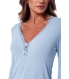 O pijama RÚBIA veio para trazer conforto e beleza para as mulheres que gostam ou precisam de um pijama aberto, seja para amamentação ou pós cirurgias. Desenvolvido em canelado sline linen, uma espécie de ribana listrada que possui um fundo em linho muito elegante. O composê entre listras positivas e negativas conferem design ao modelo e o bordado reforça o tema da coleção ?Entrelaços?, agregando valor a este pijama.