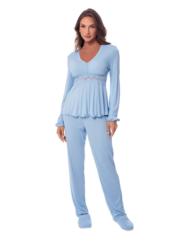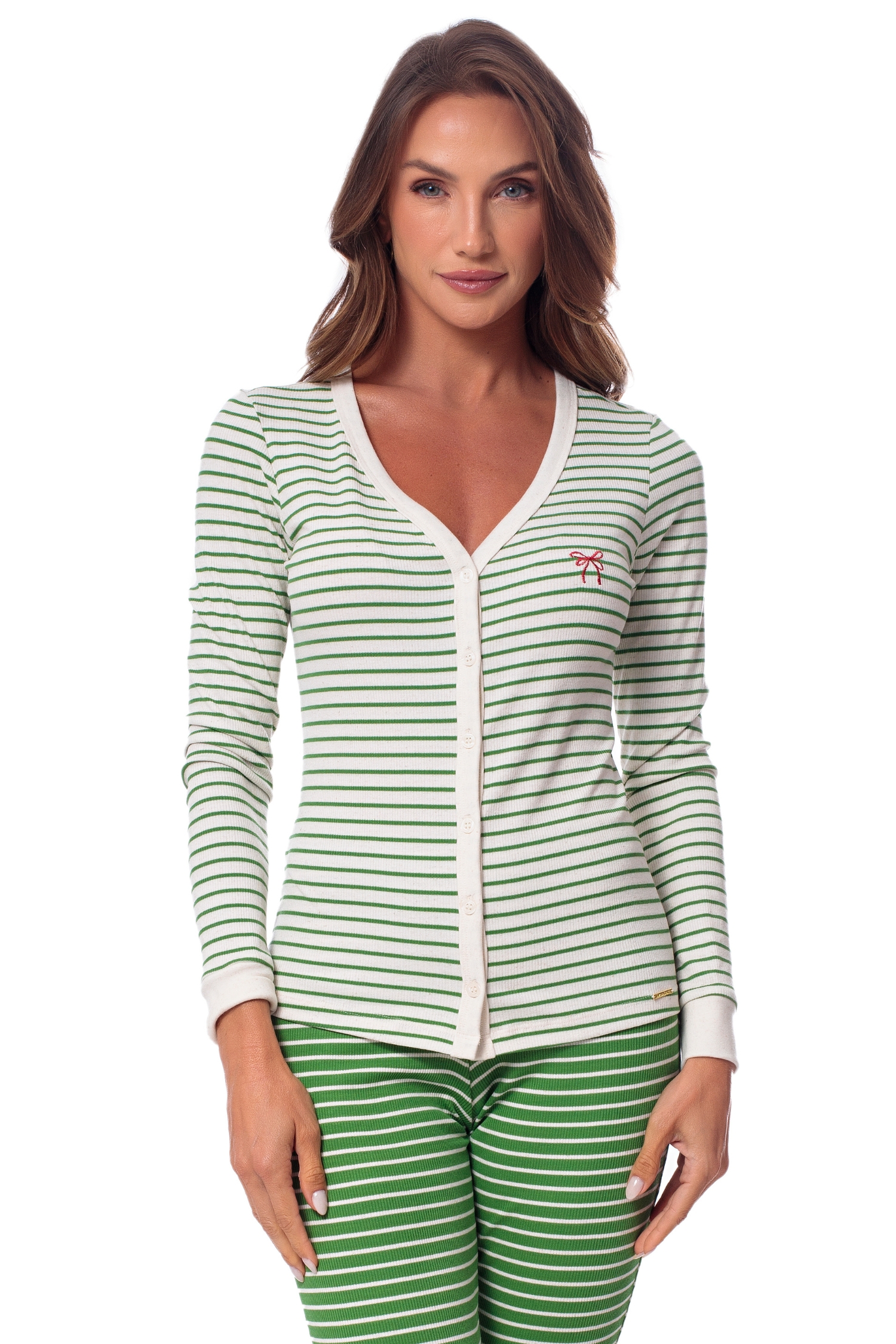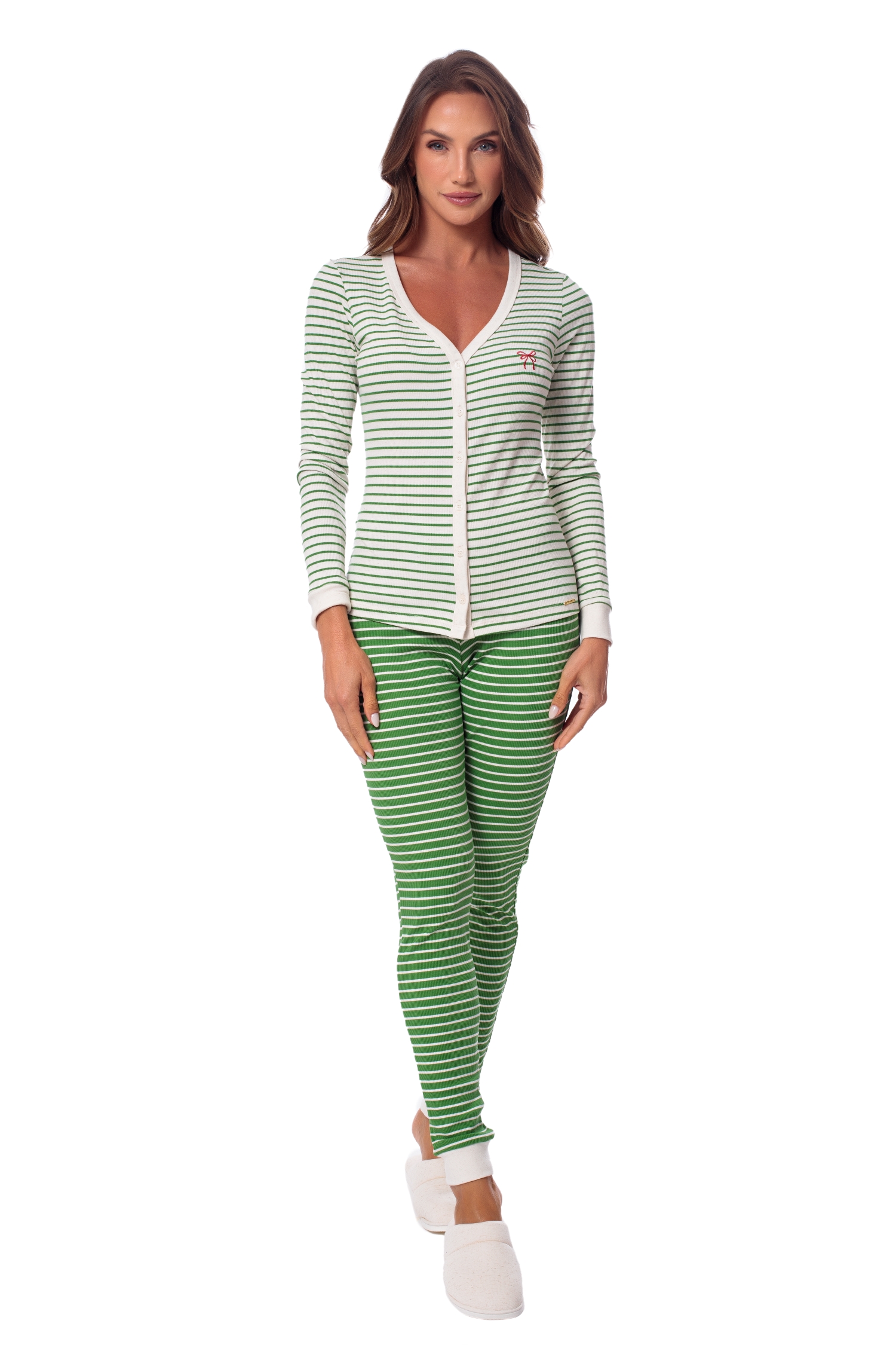 O pijama RÚBIA veio para trazer conforto e beleza para as mulheres que gostam ou precisam de um pijama aberto, seja para amamentação ou pós cirurgias. Desenvolvido em canelado sline linen, uma espécie de ribana listrada que possui um fundo em linho muito elegante. O composê entre listras positivas e negativas conferem design ao modelo e o bordado reforça o tema da coleção ?Entrelaços?, agregando valor a este pijama.