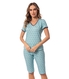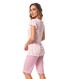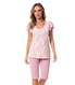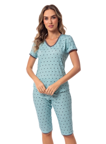 Pijama clássico da marca produzido em Plume, uma poliamida leve e fluida, de alta durabilidade, popularmente conhecida como malha fria. Modelagem com blusa solta, decote em V, revestido por uma delicada renda e aplique de pingente tipo jóia. Mangas curtas formando babados. Calça comprimento ?pescador? que traz muito conforto. A malha lisa da calça foi desenvolvida a partir da perfeita combinação entre o design e a inovadora tecnologia da poliamida Amni, proporcionando respirabilidade, fácil lavagem e secagem, artigo produzido de forma sustentável. Nesta coleção apresentamos estampas abstratas em cores suaves e também peças lisas.