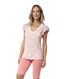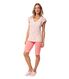 Pijama clássico da marca produzido em Plume, uma poliamida leve e fluida, de alta durabilidade, popularmente conhecida como malha fria. Modelagem com blusa solta, decote em V, revestido por uma delicada renda e aplique de pingente tipo jóia. Mangas curtas formando babados. Calça comprimento ?pescador? que traz muito conforto. A malha lisa da calça foi desenvolvida a partir da perfeita combinação entre o design e a inovadora tecnologia da poliamida Amni, proporcionando respirabilidade, fácil lavagem e secagem, artigo produzido de forma sustentável. Nesta coleção apresentamos estampas abstratas em cores suaves e também peças lisas.