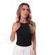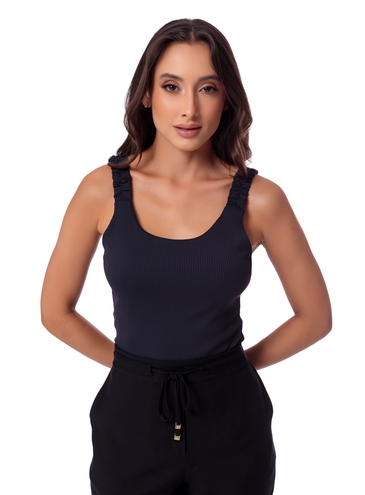 A blusa Regina é mais uma opção de blusa que a marca oferece para você poder compor com as calças e as saias da coleção. Produzida em canelado Boreal, uma malha confortável e fresca, muito bem aproveitada no verão. Esta malha possui canelado estreito e é desenvolvida de forma sustentável com viscose e elastano da mais alta qualidade. A modelagem desta blusa é ajustada ao corpo e seu design valoriza o busto, pois os acabamentos se cruzam na frente, formando um decote popularmente conhecido como decote em X.