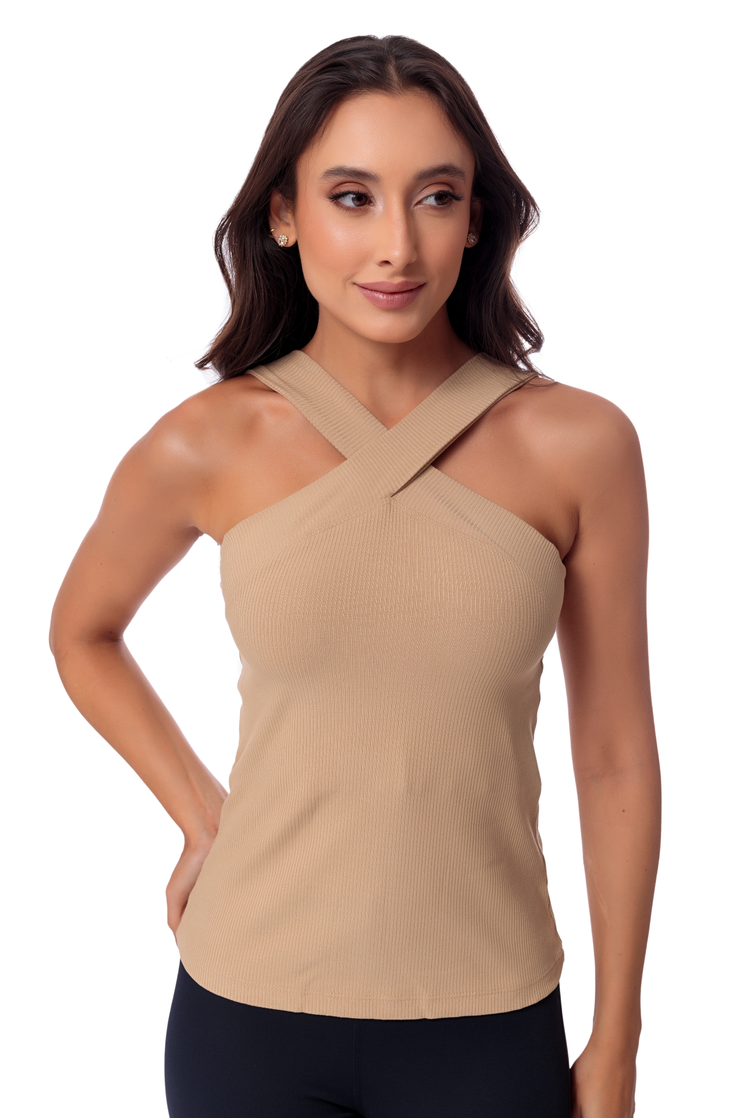 A blusa Regina é mais uma opção de blusa que a marca oferece para você poder compor com as calças e as saias da coleção. Produzida em canelado Boreal, uma malha confortável e fresca, muito bem aproveitada no verão. Esta malha possui canelado estreito e é desenvolvida de forma sustentável com viscose e elastano da mais alta qualidade. A modelagem desta blusa é ajustada ao corpo e seu design valoriza o busto, pois os acabamentos se cruzam na frente, formando um decote popularmente conhecido como decote em X.