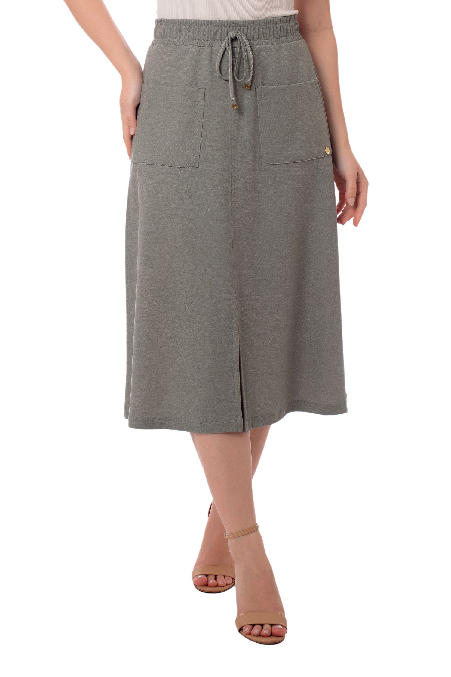 Saia confeccionada em tecido misto de viscose, poliéster e elastano, combinando leveza, maciez, boa elasticidade e resistência. Possui cós com elástico embutido que se ajusta confortavelmente ao corpo, além de cordão decorativo (sem função de ajuste), que acrescenta um toque casual à peça.