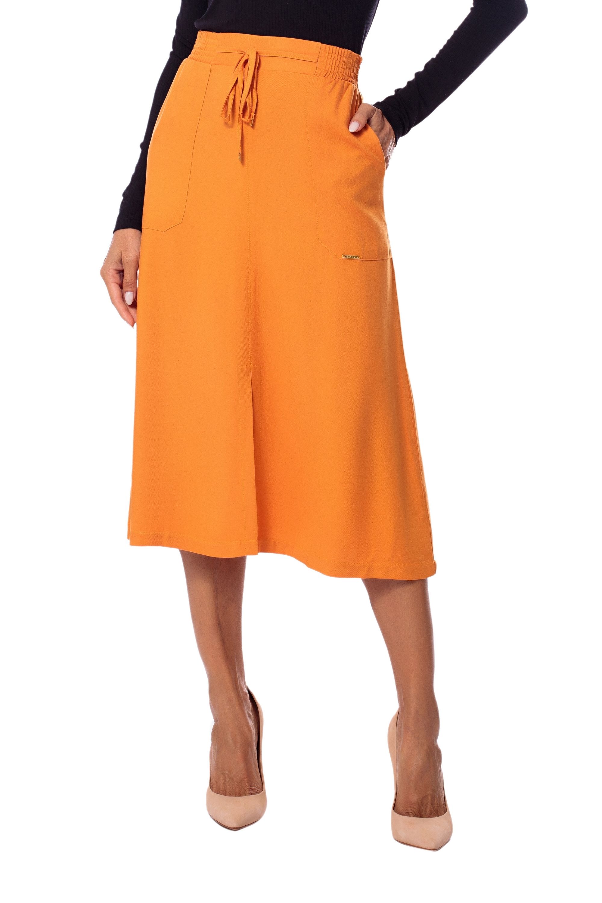 Produzida em Viscolinho Cingapura, esta é uma saia elegante e versátil. Sua modelagem evasê valoriza diversos biotipos, deixando a mulher feminina e confortável. Na composição do tecido, a junção de duas fibras nobres: a viscose e o linho, que dão origem a uma peça de aspecto rústico e natural. *Acessórios e demais peças não acompanham o produto e são vendidos separadamente.