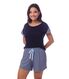 O Short Doll Carmela foi pensado para a mulher que gosta de praticidade. A blusa em modelagem solta produzida na malha Vicenza traz frescor e caimento, proporcionados pela junção da viscose com o elastano. Já o short listrado em fake suede tem comprimento confortável e toque muito macio. No decote, detalhes em picueta, uma espécie de ponto de crochê, dão charme ao modelo.
