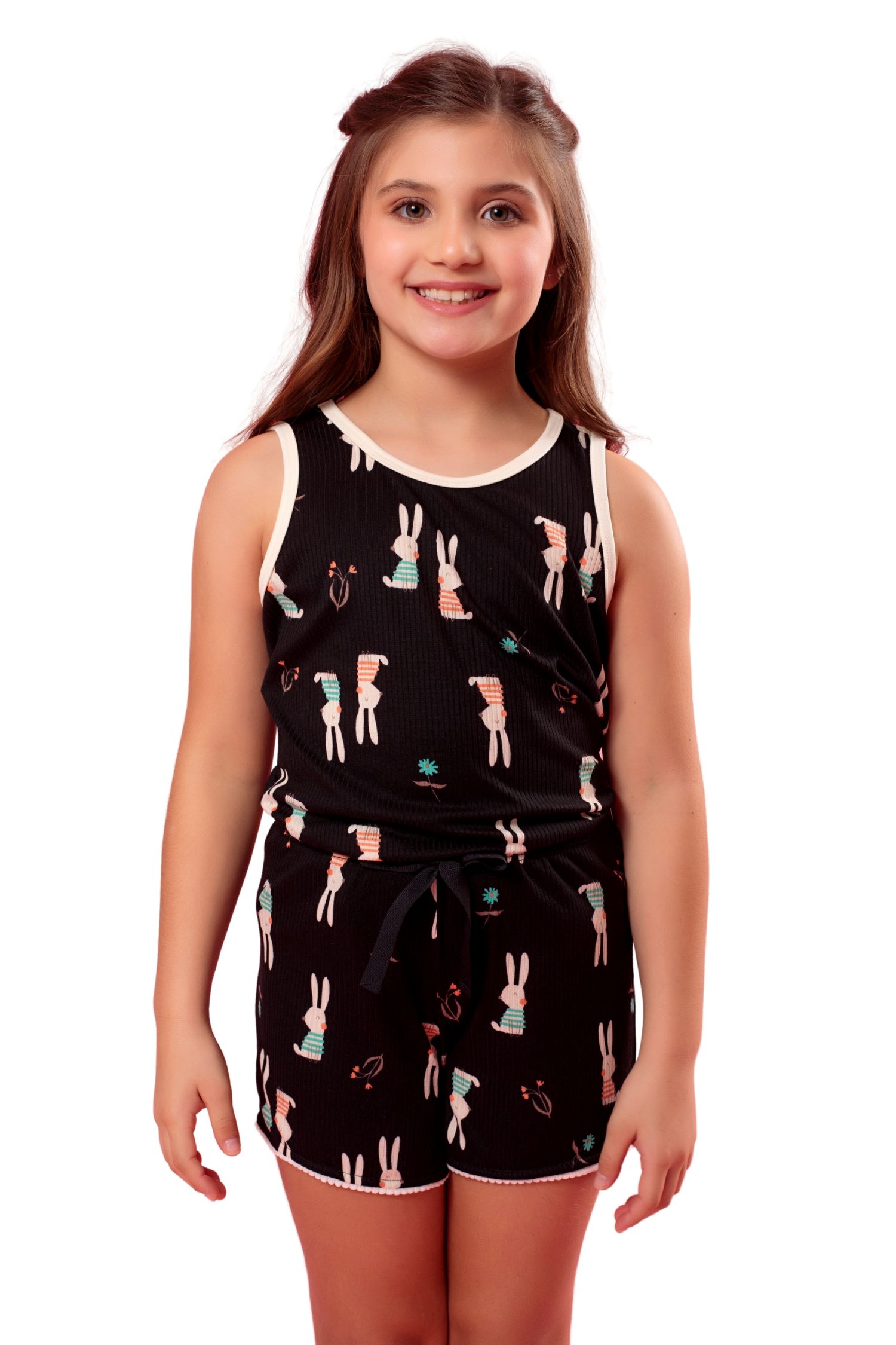 Short doll Amora, confeccionado em malha Liberty super fofa e macia, garantindo conforto e delicadeza ao vestir. Disponível em quatro estampas encantadoras, o conjunto traz uma blusa estilo regatinha, com acabamento em viés nas cavas e na gola, que adiciona um toque de charme e capricho. O short, de modelagem ajustada e confortável, é complementado por um delicado laço (não funcional) no mesmo tom do viés da blusa, criando uma harmonia visual perfeita. Uma peça que une frescor, feminilidade e fofura em cada detalhe.