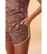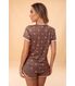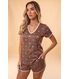 O Short Doll Marina é composto por blusa solta com decote ?V?, e short modelo esportivo, desenvolvido em Peach Skin, uma malha com excelente toque, macio como pele de pêssego (como sugere o nome). A estamparia deste produto foi