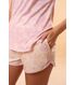 O Short Doll Marina é composto por blusa solta com decote ?V?, e short modelo esportivo, desenvolvido em Peach Skin, uma malha com excelente toque, macio como pele de pêssego (como sugere o nome). A estamparia deste produto foi desenvolvida pelo processo de sublimação, especialmente para a marca, remetendo ao tema da coleção, explorando elementos como crustáceos, lemes e cordas com muita harmonia. Neste processo a estampa é transferida de um papel especial para a malha, através do calor. Nas cores, exploramos o marrom e o verde, muito em alta nesta estação, mas também, os tradicionais delicados azul e rosa, trazendo a calmaria de uma maré serena.