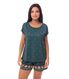 Conjunto confeccionado em malha leve de texturizada, com elasticidade equilibrada que proporciona conforto e excelente caimento. O tecido é fresco e respirável, ideal para dias quentes. Apresenta modelagem mais soltinha no corpo, favorecendo a liberdade de movimentos. A blusa conta com decote em V adornado por renda tom sobre tom e detalhe delicado de laço central, que acrescenta feminilidade ao visual. Nas mangas e na barra do short, o acabamento em fru fru garante um toque romântico e sofisticado, reforçando o apelo delicado da peça.