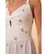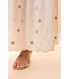 Vestido desenvolvido em tecido plano jacquard, em uma modelagem elaborada que valoriza o corpo da mulher com romantismo e elegância. Na composição, fibras nobres como a viscose e a poliamida trazem qualidade, caimento e frescor para o modelo. O vestido Ana é longo com babados franzidos no estilo 3 marias. As alças largas trazem corforto e sua modelagem valoriza o busto. Para se adaptar aos mais diversos biotipos, as costas foram confeccionadas com carreiras de lastex, o que deixa o vestido ainda mais confortável.