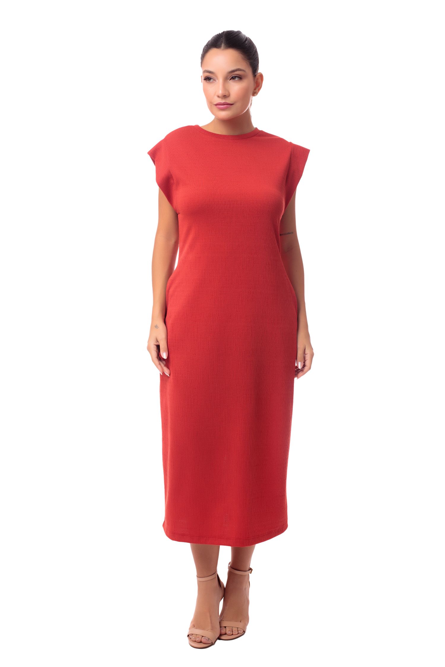Vestido solto e confortável, confeccionado em modelagem estilo regata com recorte muscle, que traz um ar moderno e despojado à peça. Possui bolsos embutidos laterais, práticos e funcionais, sem comprometer a fluidez do caimento. Na parte de trás, apresenta fenda discreta, que garante maior liberdade de movimento e um toque de charme ao visual. Versátil e atemporal, é uma opção perfeita para composições casuais com elegância natural.