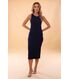 Peça atemporal e versátil, podendo ser usado em diversas ocasiões e climas, o vestido Paula possui uma modelagem clássica: comprimento midi, fenda nas costas, cavado, ajustada ao corpo, o que é perfeitamente permitido pela elasticidade da malha Boreal. Este artigo é formado pela mistura da viscose com o elastano, proporcionando uma peça com excelente caimento e conforto térmico. Pode ser usado em todas as estações do ano.