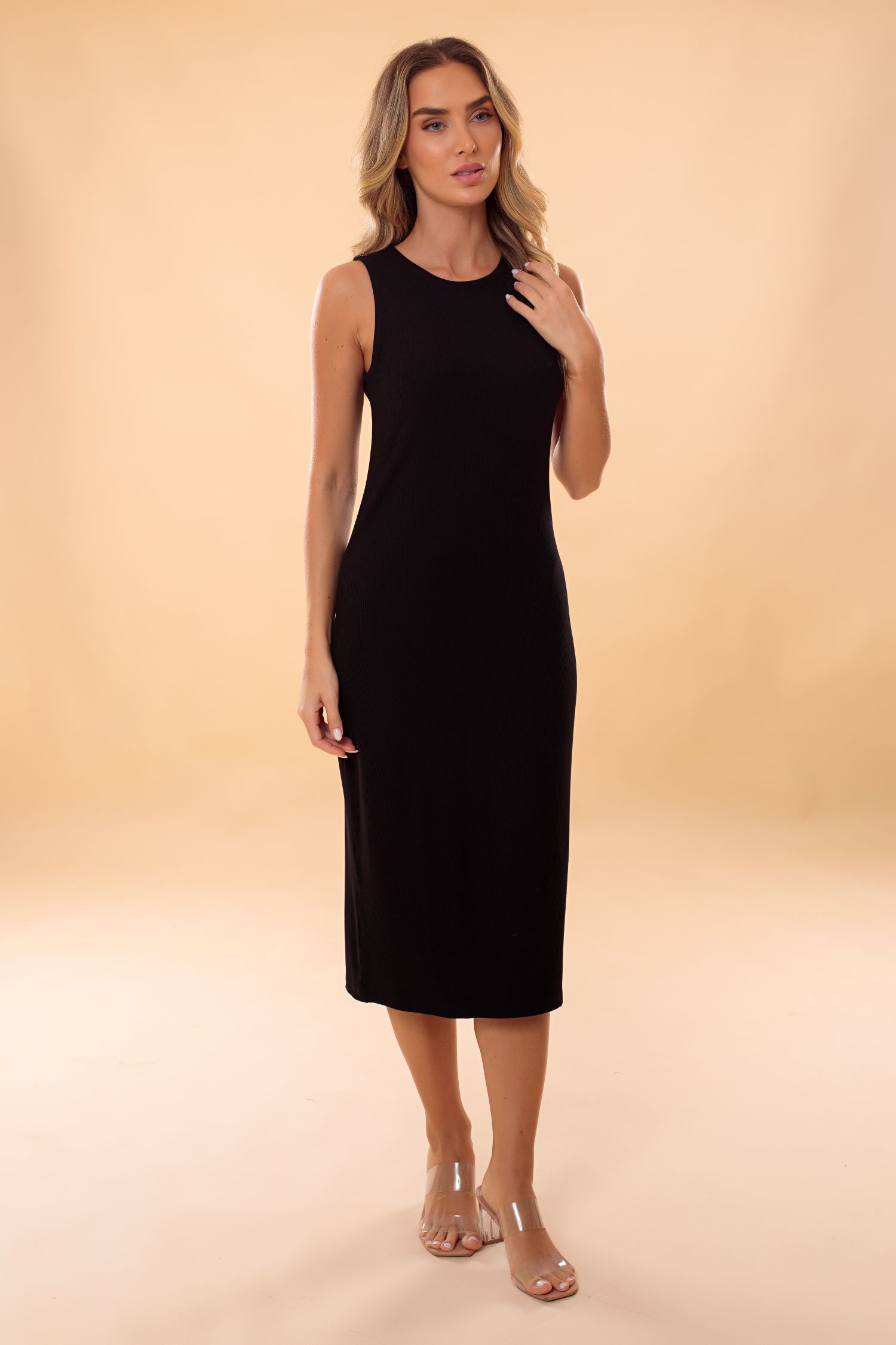 Peça atemporal e versátil, podendo ser usado em diversas ocasiões e climas, o vestido Paula possui uma modelagem clássica: comprimento midi, fenda nas costas, cavado, ajustada ao corpo, o que é perfeitamente permitido pela elasticidade da malha Boreal. Este artigo é formado pela mistura da viscose com o elastano, proporcionando uma peça com excelente caimento e conforto térmico. Pode ser usado em todas as estações do ano.